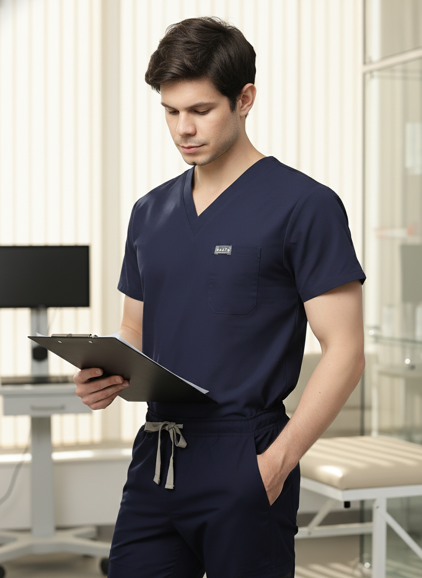 بدلة طبية كلاسيكية ببنطال مستقيم - (أزرق داكن) (رجالي)