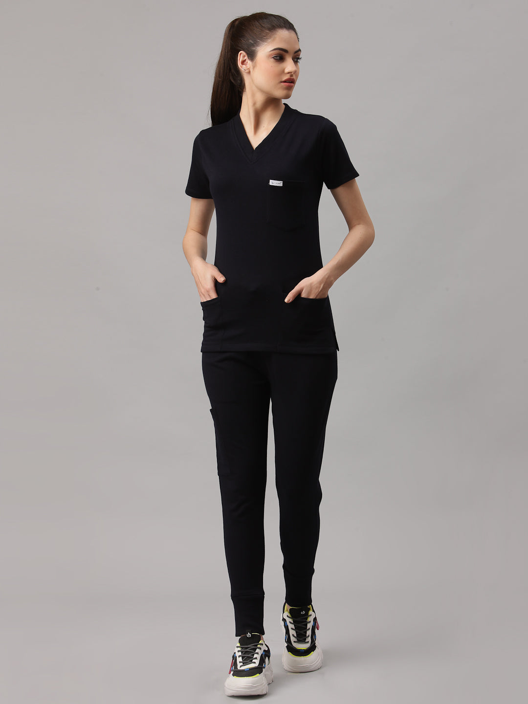 Inspired by athleisure wear, the jogger-style fit offers a flattering silhouette with effortless movement. With a comfortable elastic waistband, functional pockets, and soft-on-skin feel, these scrubs are perfect for everyday hospital and clinic use—helping you stay comfortable, confident, and focused throughout your day.