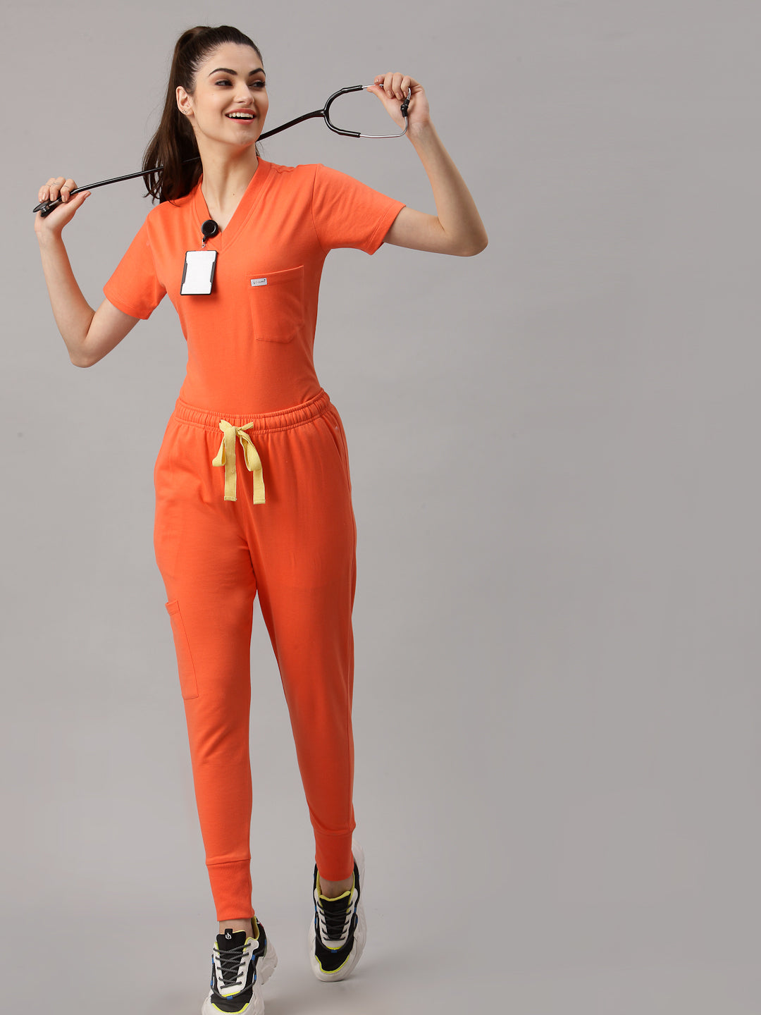 Inspired by athleisure wear, the jogger-style fit offers a flattering silhouette with effortless movement. With a comfortable elastic waistband, functional pockets, and soft-on-skin feel, these scrubs are perfect for everyday hospital and clinic use—helping you stay comfortable, confident, and focused throughout your day.