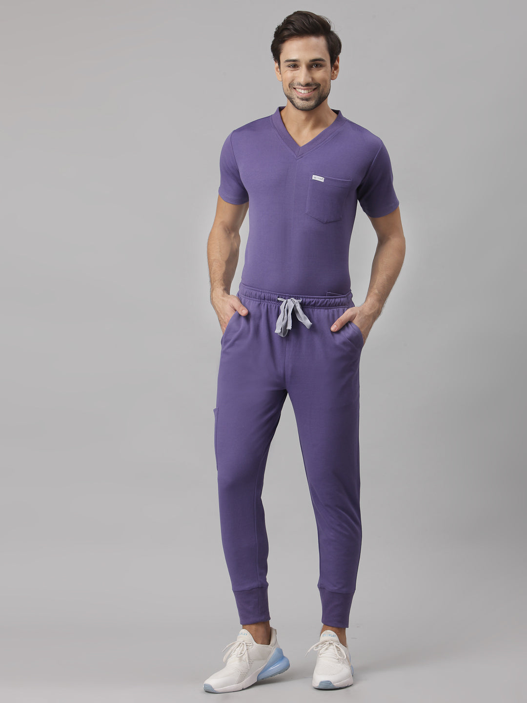 Inspired by athleisure wear, the jogger-style fit delivers a sharp silhouette while allowing easy movement. Featuring a comfortable elastic waistband, functional pockets, and soft-on-skin feel, these scrubs are built for everyday hospital and clinic use—helping you stay comfortable, confident, and focused throughout your day.